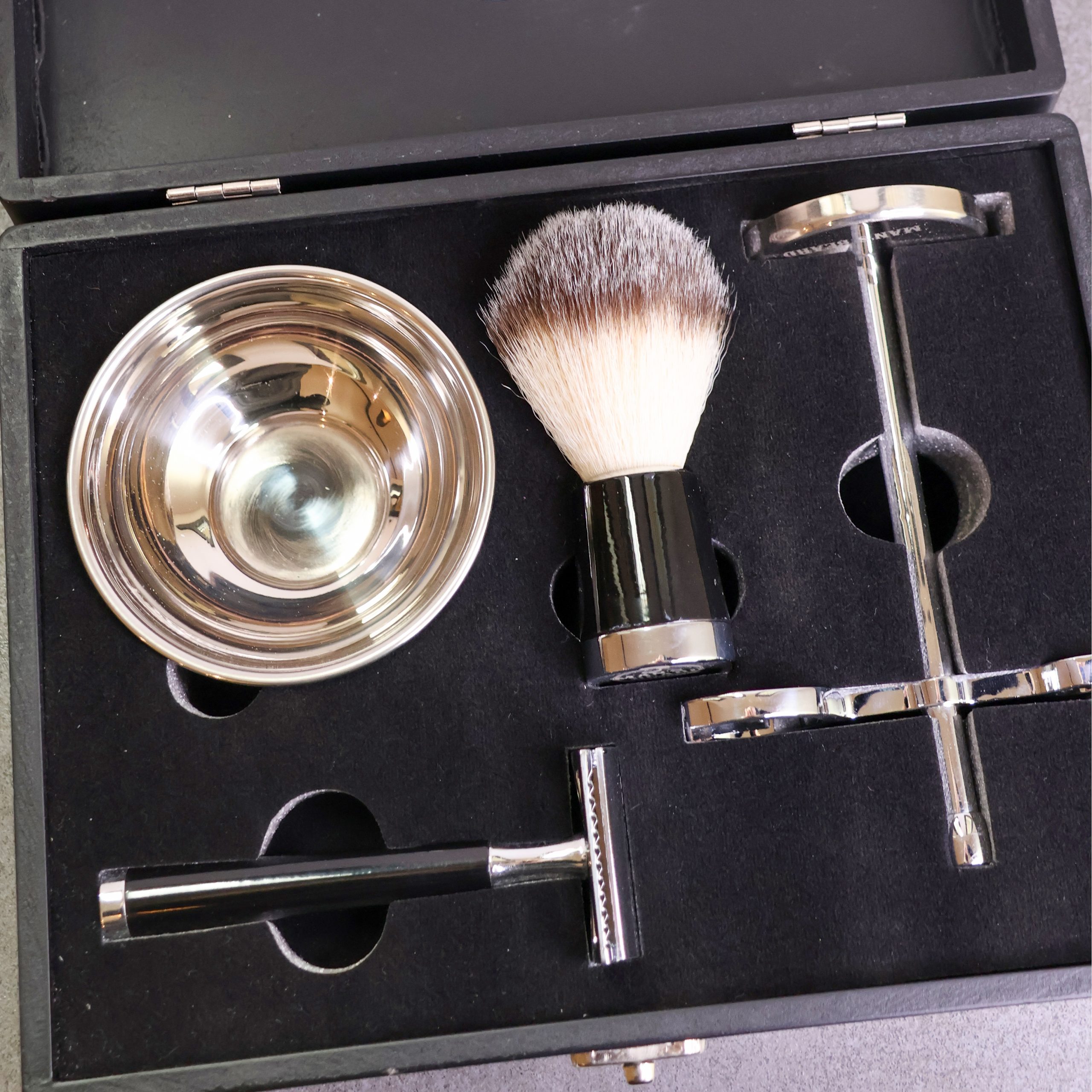 Découvrez le Coffret Noir Rasoir, l’ensemble essentiel pour un rasage précis et soigné, présenté dans un coffret noir élégant.