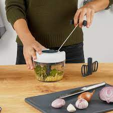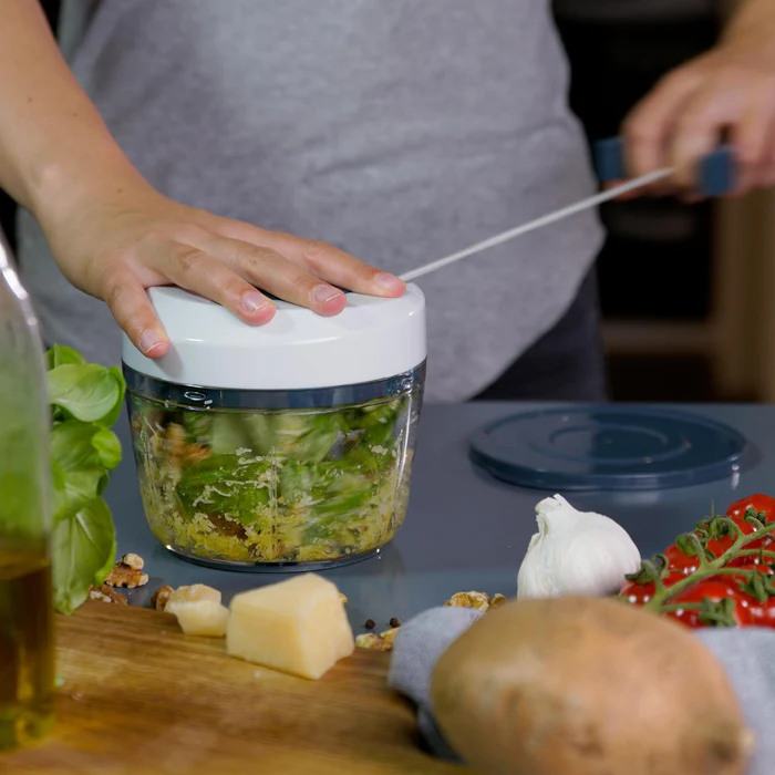 Fackelmann vous propose ce hachoir multifonction qui s’utilise en tirant sur le fil pour faire tourner les lames.
