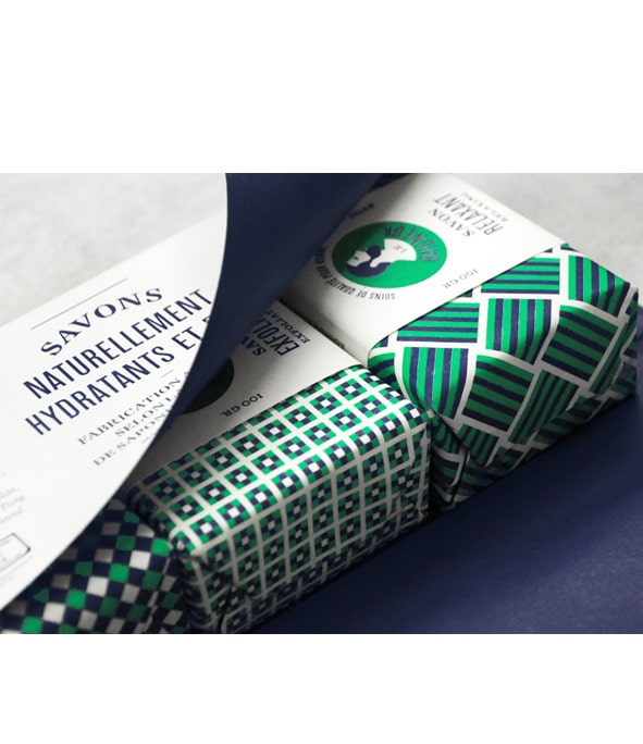 Retrouvez les savons TONIFIANT / RELAXANT / EXFOLIANT Nettoyage en douceur, respectant ainsi le film hydrolipidique de la peau Sans parabène, Sans huile de palme, Sans silicone et parafine Fabrication : FRANCE Contenance : 3 x 100 g