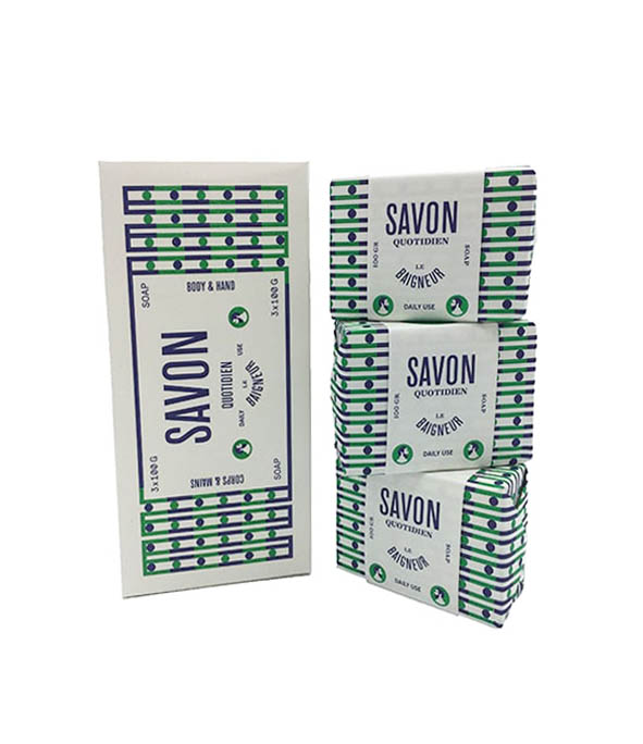 Idéal pour le corps et les mains. 5% surgras et parfumé Saponification à froid aux huiles essentielles de méditerrannée Sans parabène, Sans huile de palme, Sans silicone et parafine Fabrication : FRANCE Contenance : 3 x 100 g
