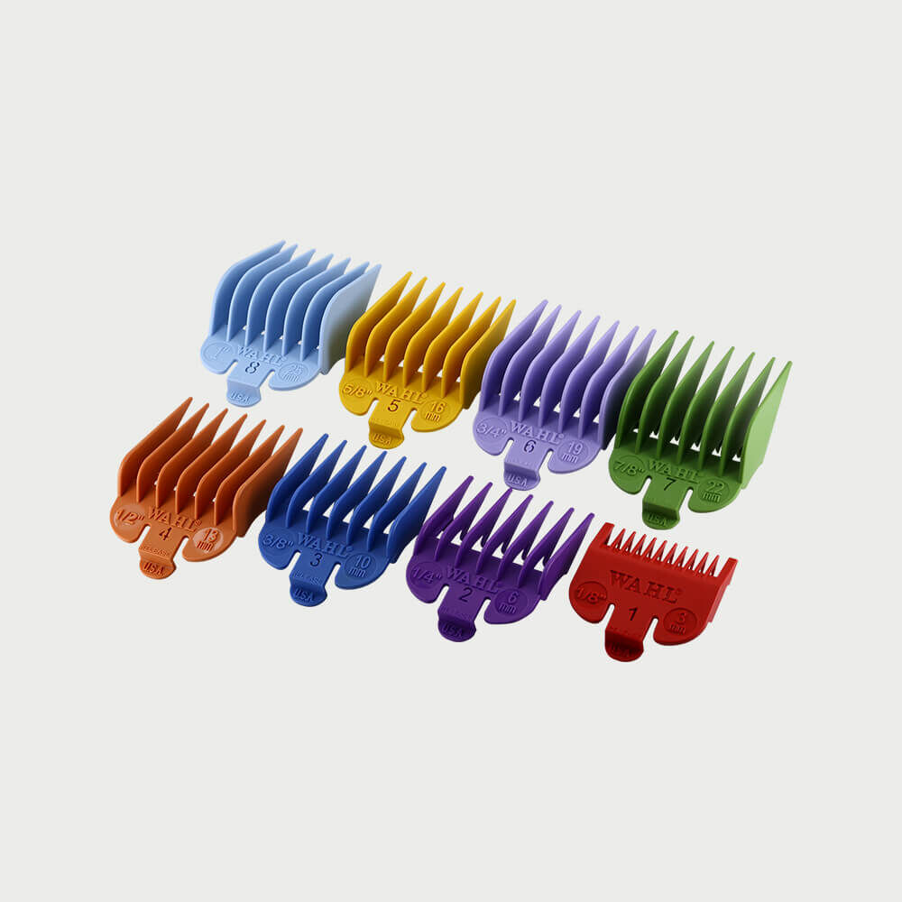 Ce set de peignes guides de coupe Wahl est compatible avec les tondeuses de la marque en taille standard. Détachez le guide de coupe précédemment utilisé de la tondeuse et attachez à la place celui de votre choix. Vérifiez que celui-ci est bien en place avant de commencer la coupe.